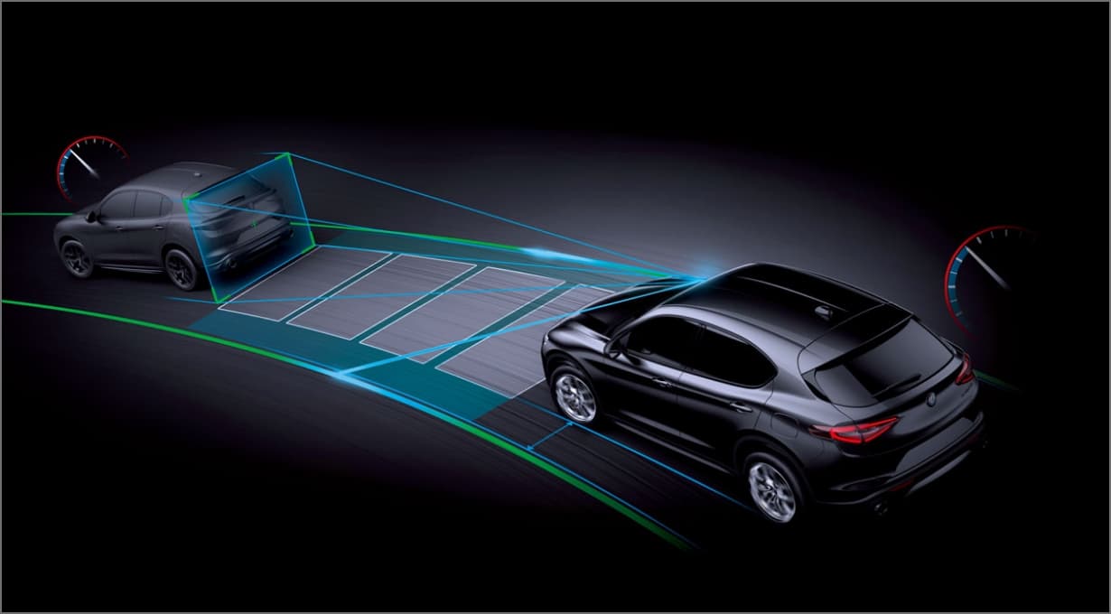 ステルヴィオは、情熱的なドライブを支える先進の運転支援システムを搭載。優れたコントロール性能と卓越したドライビングプレジャーを提供するために、車両周辺をインテリジェントに監視するシステムを搭載しています。